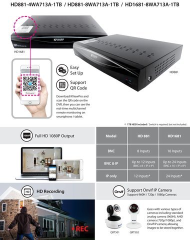 -. Title : Kguard Full HD Hybrid Series 8 Channel HD881-8WA713A-1TB with 8pcs 1MP Cameras, Dropbox, Supports OnVif WiFi IP Cams, DIY Home/Office Surveillance System