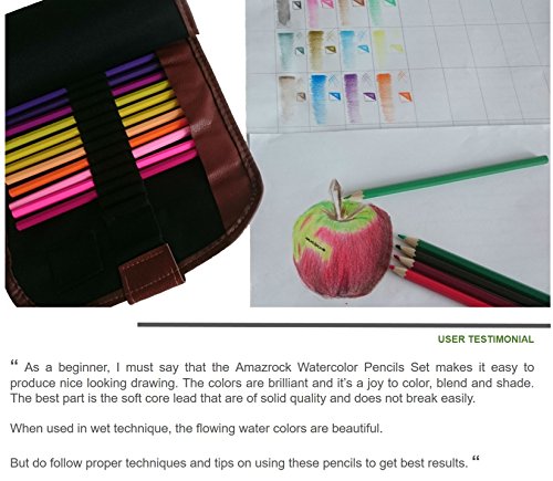 QUALITY GUARANTEE - These pre-sharpened quality watercolor pencil set is best for dry and wet artistic creations. Shade them on dry paper and apply a water wash or use water brush/cotton bud to get a watercolor look with unique blending effects. It includes a roll-up pencil holder (color pencil pouch). We are confident that you will enjoy our multi color watercolor pencil set !