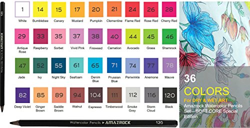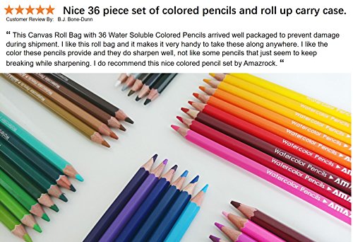Amazrock Watercolor Pencils Set - 36 Colors (Soft Core Special Edition) | Water Soluble Artist Colored Pencils | Includes CANVAS Roll Colored Pencil Case