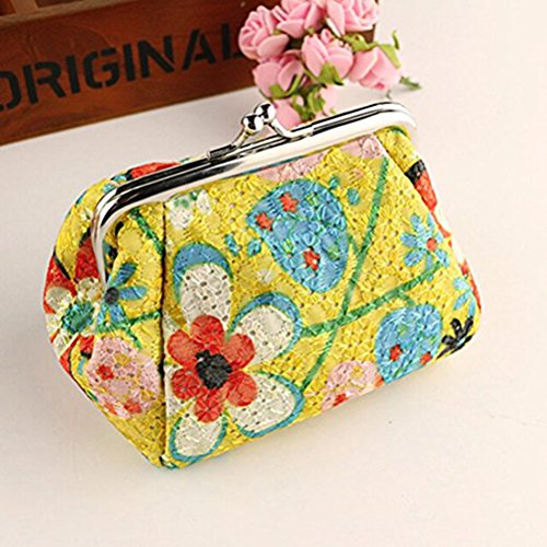 Package Including 1 * Women's Coin Purse Flower Pouch Wallet Money Bag (Yellow) 0
