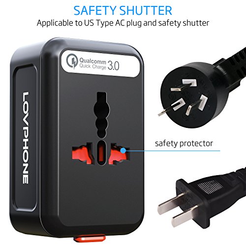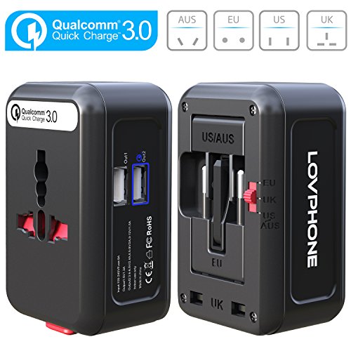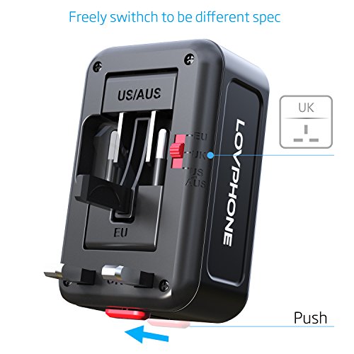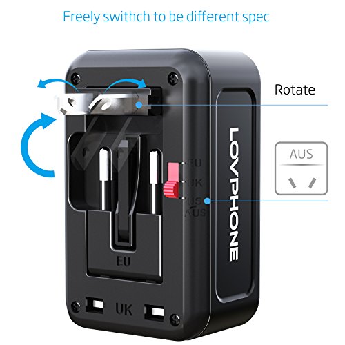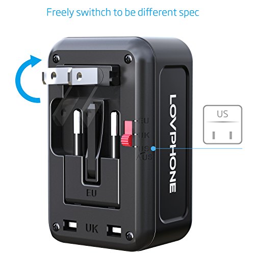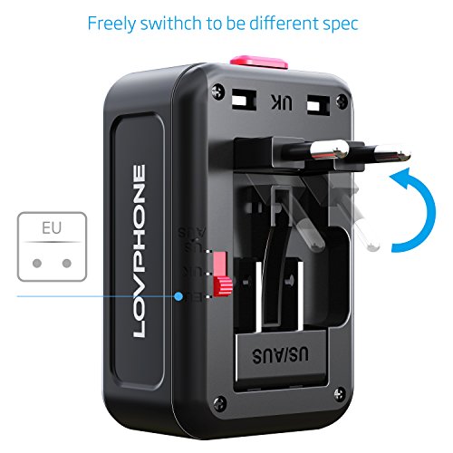 Travel Adapter,LOVPHONE Universal All in One Worldwide Travel Power Plug Wall AC Adapter Charger with Dual USB Charging Ports for US/EU/UK/AU, Black