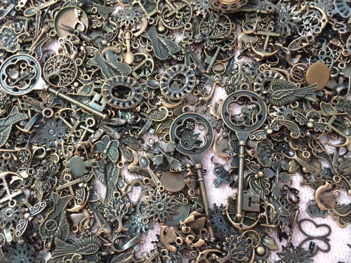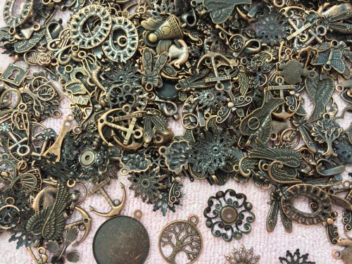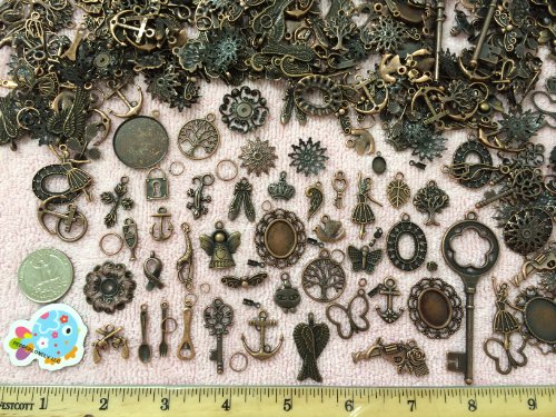 30pc Assorted Red Copper Charms, Bails, Jumprings, Cameo Bezel Settings, Pend...