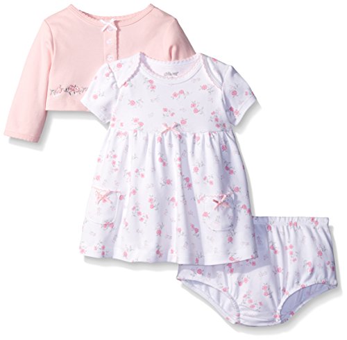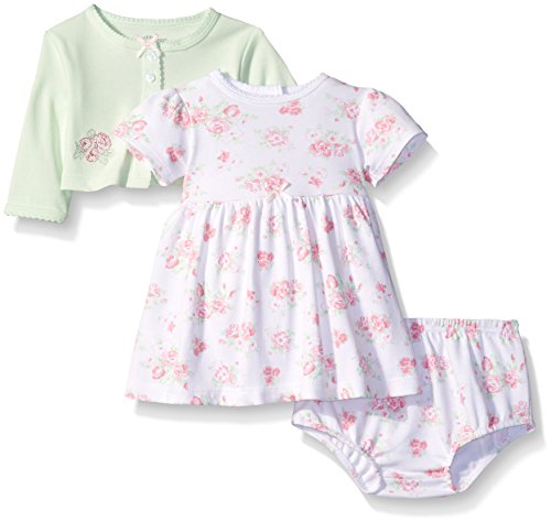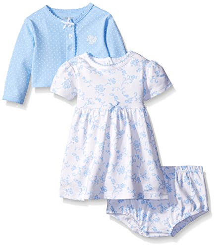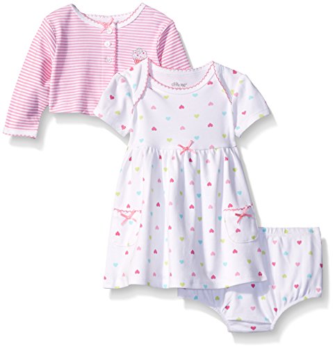 Cover her in head-to-toe cuteness with this precious set, done up in pretty damask and fun polka dot patterns. Includes baby girls' cotton dress, panty and cardigan.Feature