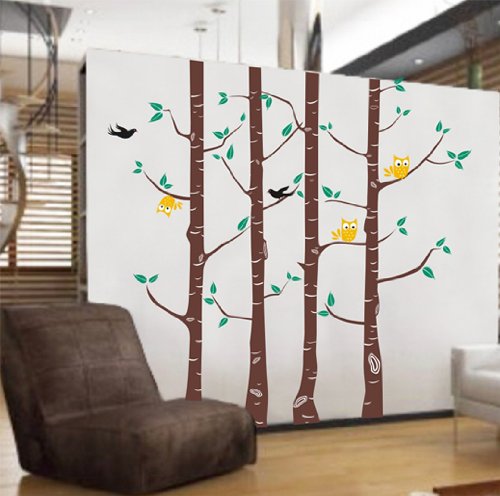 Pop Decors Removable Vinyl Art Wall Decals Mural for Nursery Room, Owl and Tree Decals