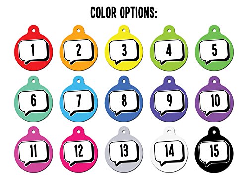 Studio : Wag-A-Tude Tags Publisher : Wag-A-Tude Tags Binding : Misc. Product Description Our pet tags are made from a lightweight aluminum metal core with a unique long lasting coating. The graphics and colors are permanently fused to the tag and will not rub off or fade. Fully customizable with up to 5 lines of text on reverse. Free split ring for easy collar attachment and glow in the dark tag silencer for added protection. Available in 2 sizes, Small (1") and Large (1.25"), making them suitable for all breeds. 0