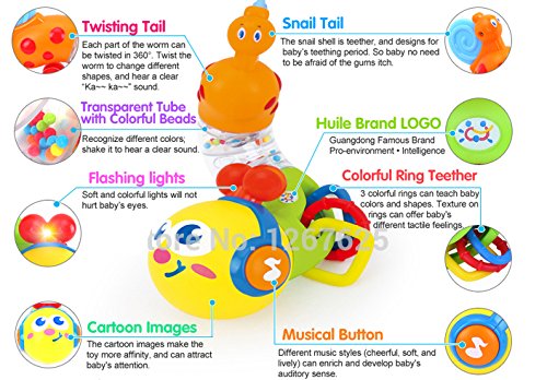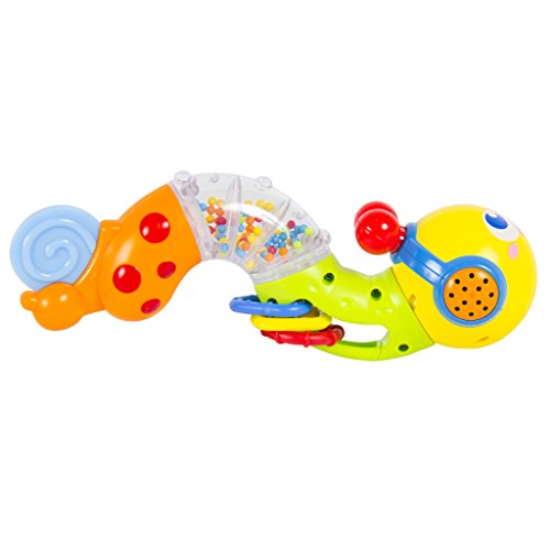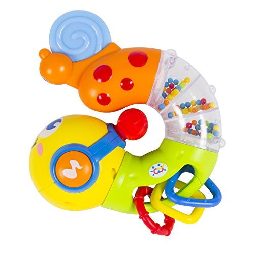 Smiley face, soft grip rings, colors beads, and snail shell teether