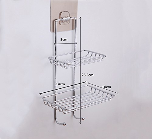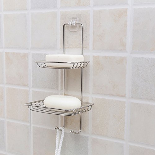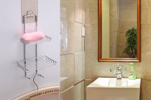 Mural Art Strong Self-Adhesive Stainless Steel Double-Layer Soap Dish Holder with Hooks Nail Free Wall Mounted
