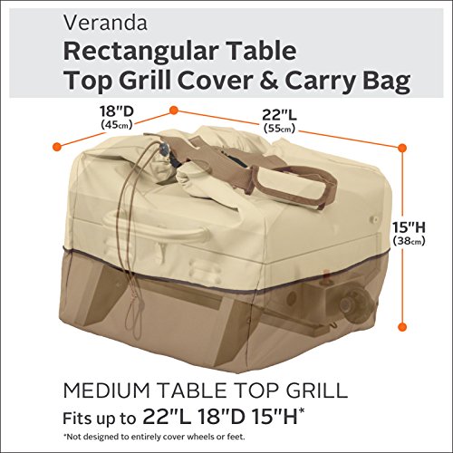 Classic Accessories 55-974-031501-00 Veranda Portable Rectangular Table Top Grill Cover & Carry Bag