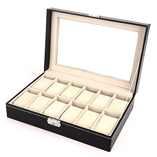-. Feature : UNIQUE,CONVENIENT & ATTRACTIVE DESIGN - GZNIGHT Watch Box is a unique , beautiful and a more convenient design box than the other watch boxes out there.And It can be easily opened and closed with one hand for the most convenient use and will cushion the your watches or home jewelry decoration securely on individual pillows. The lid features a clear glass to enable easy viewing of the watches and jewelry inside. / SUPERIOR QUALITY - The Black PU Leather is selected and high-quality. / 12 LARGE WATCH SLOTS - Capacious room for your large watches, removable pillows included.Each watch cushion holds a small or large watch neatly in place . There is plenty of space between the lid and cushions to accommodate watches of all size. DIMENSIONS- Exterior: 13"(D) x 7.5"(W) x 3.5"(H);Individual compartments: 3"(D) x 2"(W) x 1.5"(H). / FREE GIFT CARD & GIFT BOX - An elegant gift box and gift card is included with each watch box for the most presentable gift giving. This makes a great gift for a father, boyfriend , husband, son, boss, friend or any other watch lover in your life. / WE SPOIL OUR CUSTOMERS! Buy it Risk-Free. We will do everything we can to ensure you are COMPLETELY satisfied with your purchase. Refunds , exchanges and all. You are Guaranteed to be happy.