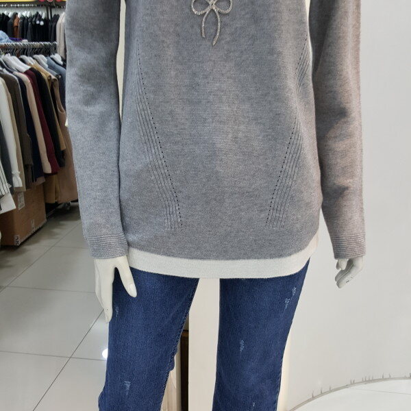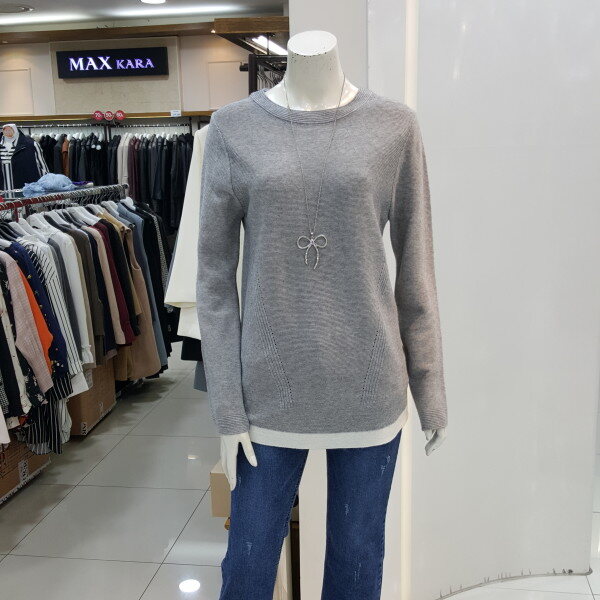 라운드넥에 하단에 아이보리로 포인트를 주어 더깔끔하고 적당한기장감으로 편안하게 연출하기좋아요