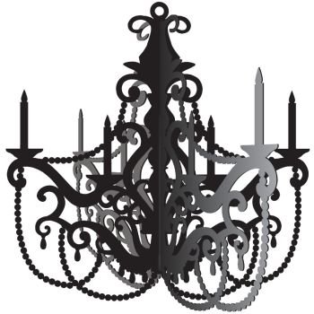 Glam up any space with this Party in Paris Hanging Chandelier. Easy to hang, the ornate, black card stock cutout illuminates the honoree's personality with its classic shape. Sure to make a grand statement, the Parisian party decoration measures 16.6" x 16.5". 1 per package