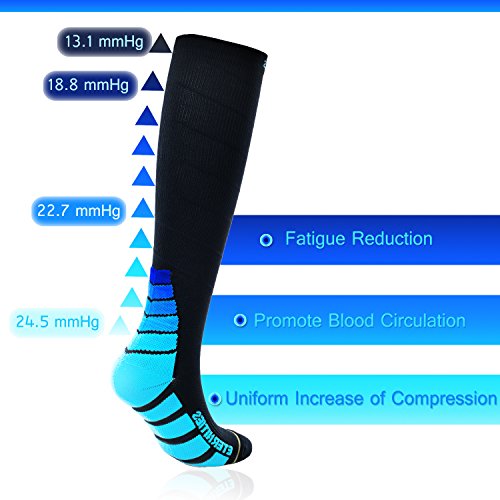 - GRADIENT COMPRESSION TECHNOLOGY - Eternities men’s and women’s compression socks achieves True 20-30 mmHg Medical Grade Graduated Compression to support your foot, heel, arch, ankle, and calf. Our professional stockings enhance blood circulation, ensure faster restore, relief of fatigue, soreness, varicose veins, swelling, edema, cramping or muscle soreness issues.