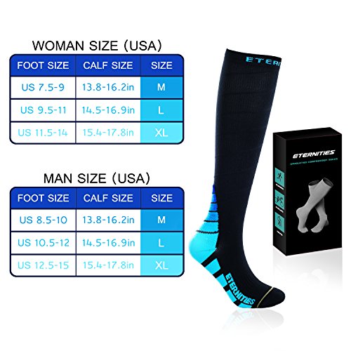 Eternities Compression Socks for Men & Women - 20-30 mmhg Graduated fit for Flight,Travel,Medical,Nurse,Athletics,Running,Maternity Pregnancy,Varicose Veins. Boost Stamina, Circulation, & Recovery.