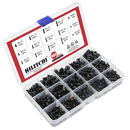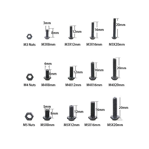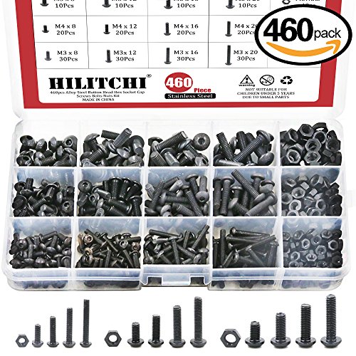Hilitchi 460-Pcs M3 M4 M5 Button Head Hex Socket Head Cap Bolts Screws Nuts Assortment Kit - 10.9 Grade Alloy Steel