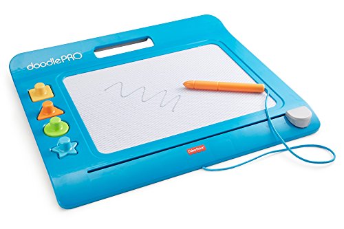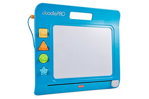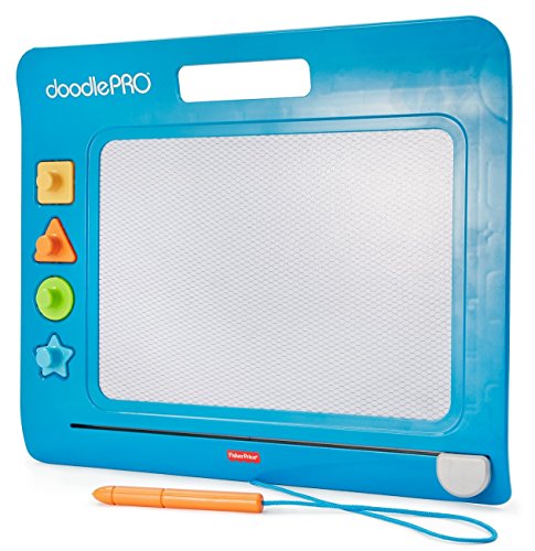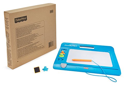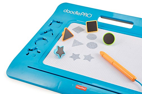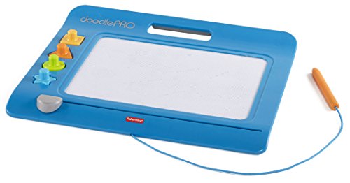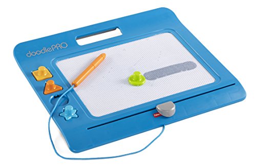The Doodle Pro Slim offers hours of classic mess-free drawing, doodling and stamping fun in a sleek new design! The attached screen saver pen, four easy to use shape stampers and extra-large magnetic drawing screen gives little ones the big confidence they need when drawing and doodling. Plus, the easy-slide eraser magically cleans the screen so they can draw up new creations over & over again!Feature