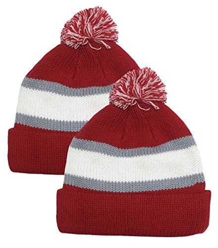 N'Ice Caps Big Kids Sports Fan 2 Ply Lined Knit Winter Hats - 2 Piece Packs