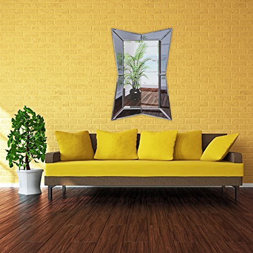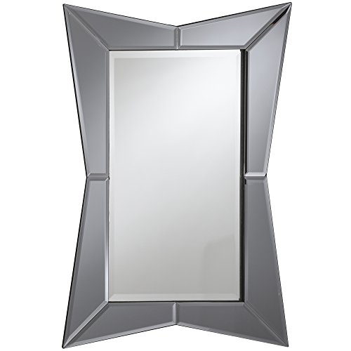 Breeze Point 24" x 36" Rectangular Beveled Large Modern Wall Mirror -Decorative Mirror Framed with Geometric Abstract Shaped Grey Tinted Mirrored Border, Silver (M00223)