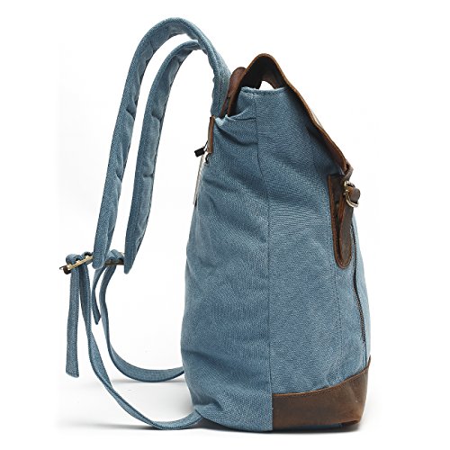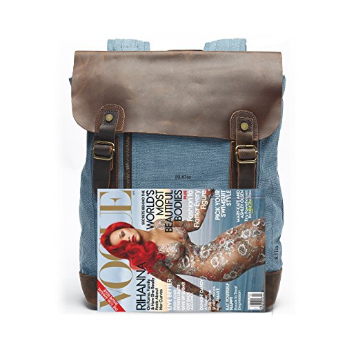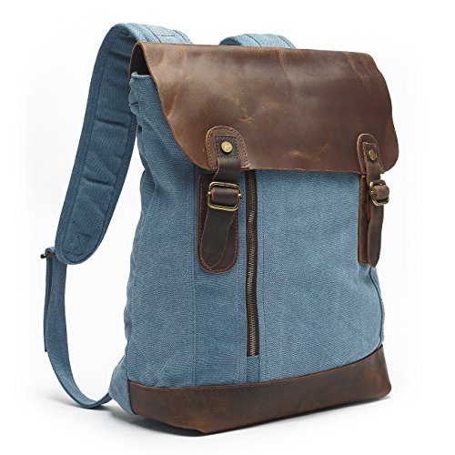 -. Brand : Mlife -. Color : Blue -. Department : mens -. Feature : High density canvas with first layer crazy horse leather flap; Retro bronze hardware. / Easy to fit 14.1'', 14.6'', 15.6' 'latpop ,A4 Size Magazine, 4-6 clothigns; Suit for short journey. / One large compartment includes: 2 open pockets, 1 multifunctional slip and 1 side zipper pocket. One exterior front zipper pockets.One exterior back zipper pockets. / Notice : The color of lining may be different from different lot number. / Size: Approx. 11.81"L x 15.75"H x 5.91" W Weight:2.38 pounds. -. Model : BP-28 -. ProductGroup : Apparel -. ProductTypeName : LAGE -. Size : Medium -. Title : Mlife Basics Canvas Genuine Leather Backpack Daypack