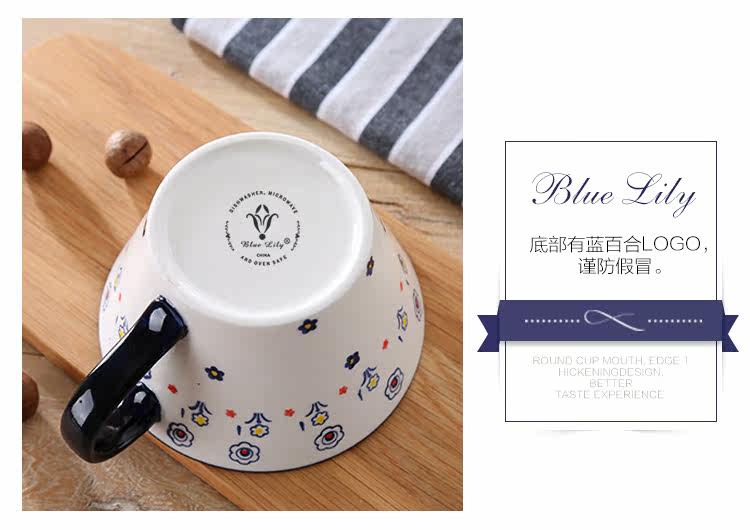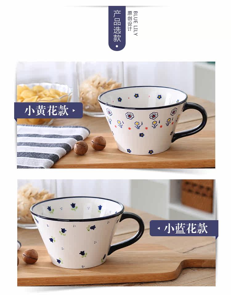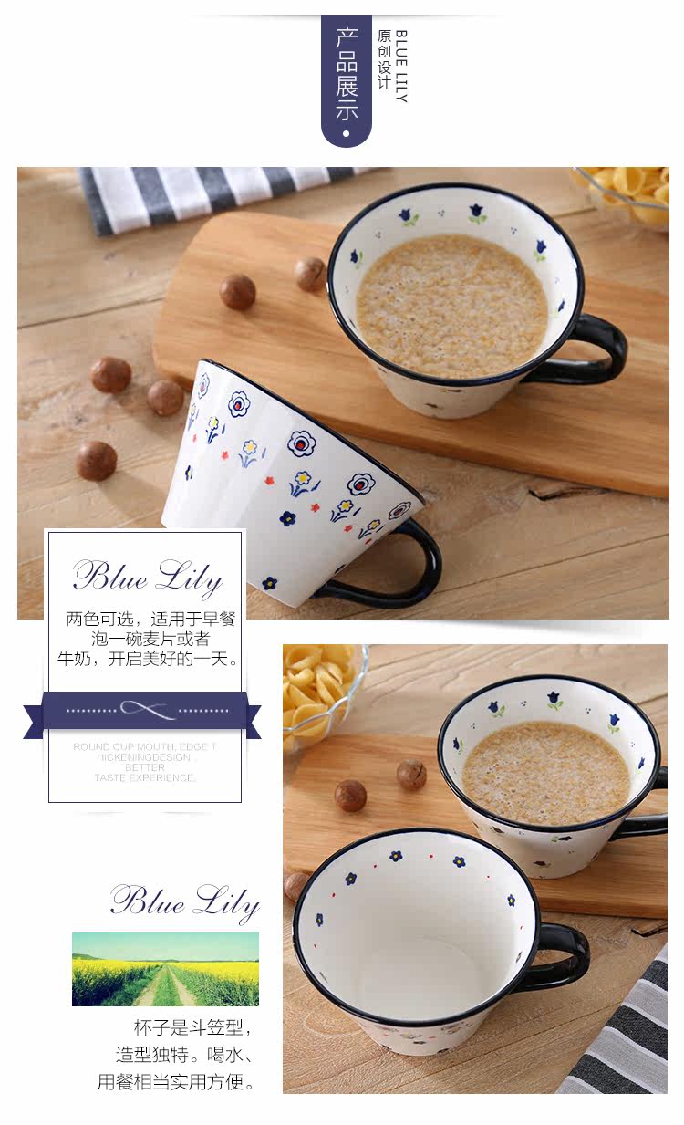 田园小清新小碎花蛋形早餐把手餐杯麦片杯 大容量咖啡杯陶瓷杯