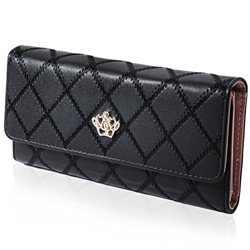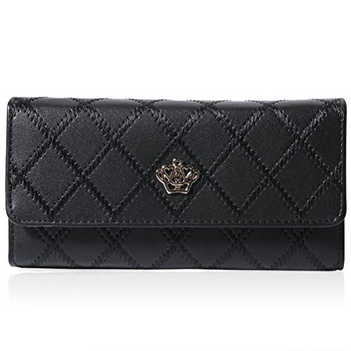 -. Title : Womens Leather Elegant Crown Wallet Clutch Long Purse