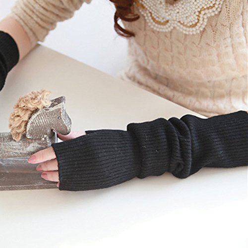 Product Description Women's Long Fingerless Arm Warmer Wool Knit Soft Arm Warmer Long Sleeve Gloves Our winter arm warmer are fashion forward designed, which are windproof and washable. They will show your taste of fashion and keep your hands warm indoors or outdoors. Hand wash would be better, hang dry, and do not bleach. 0