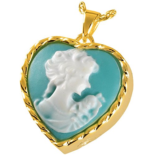 Memorial Gallery MG-3516GP Heart Cameo Marine 14K Gold/Silver Plating Cremation Pet Jewelry, Green