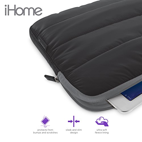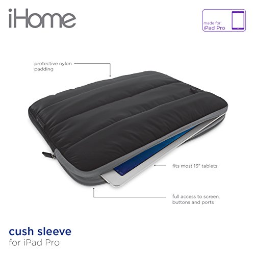-. Binding : Electronics -. Brand : iHome -. Color : Black -. EAN : 0812350094437 -. Feature : PROTECTION - Soft fleece lining. Protective nylon padding. Protect your expensive tablet or laptop. / COMPATIBLE - Fits most 13" tablets and ultra-thin laptops. iPads, Samsung Galaxy Note, Surface, Lenovo Thinkpad / PORTABLE - Slim design allows you to safely put your tablet in a backpack or suitcase. Take your device with you wherever you go and don't worry about damaging it. / DURABLE - Quality construction. Reliable, hassle free zipper. Nylon fabric with a grey trim looks great too! -. Label : iHome -. Manufacturer : iHome -. Model : IH-IR1470BS -. MPN : IH-IR1470BS -. PartNumber : IH-IR1470BS -. ProductGroup : PC Accessory -. ProductTypeName : COMPUTER_COMPONENT -. Publisher : iHome -. Studio : iHome -. Title : iHome - 13" Tablet Laptop Sleeve Case iPad Samsung Galaxy Tab Surface Macbook Air Lenovo Thinkpad - Cush Series (Black/Silver) -. UPC : 812350094437