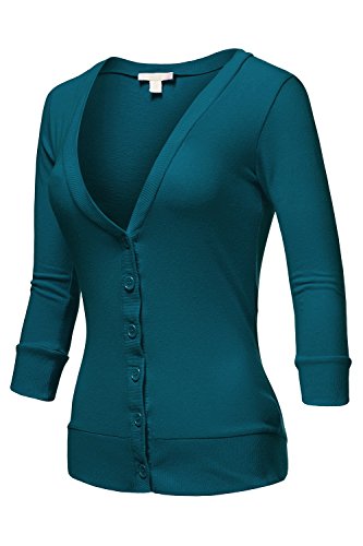 -. Feature : V-neck with 3/4 sleeve. / Button front / Ribbing on bottom hem and sleeve cuff / Please refer to our size chart for sizing information. / Style# : GCDW003