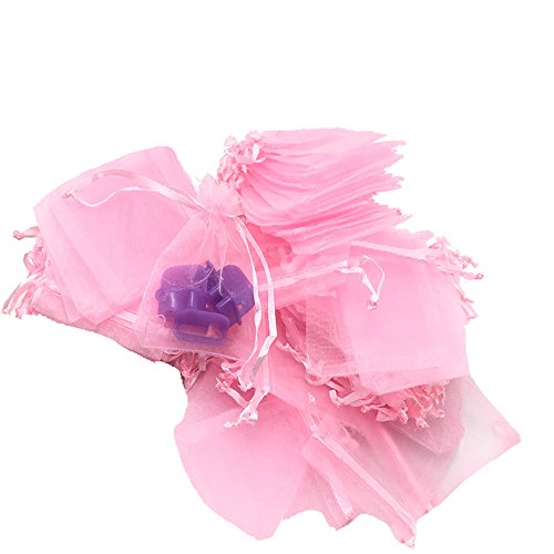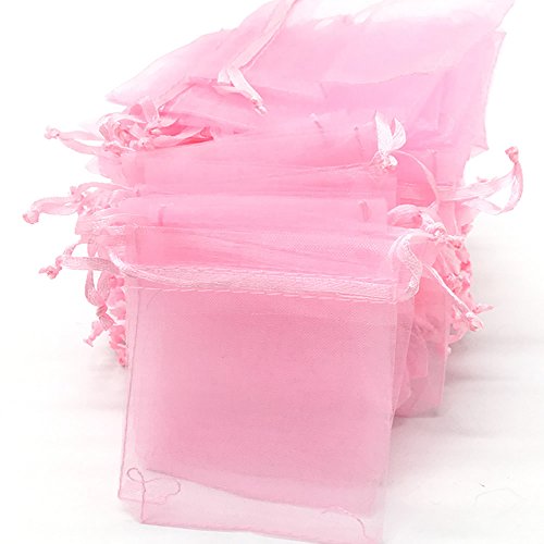HUELE Pack of 100 Pink color Organza Drawstring Gift Bag Pouch Wrap for Party/Game/Wedding,7X9CM/2.75X3.54 Inch