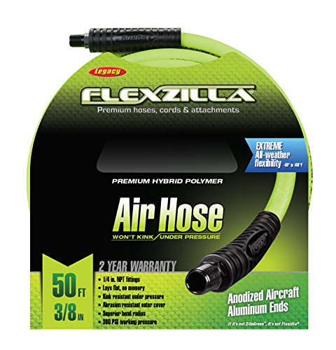 Flexzilla Air Hose, 3/8 in. x 50 ft., 1/4 in. MNPT Fittings, Heavy Duty, Lightweight, Hybrid, ZillaGreen - HFZ3850YW2