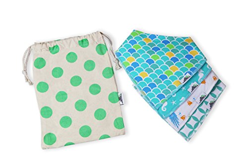 Binding : Apparel Product Description FASHION MEETS FUNCTION IN OUR ADORABLE BANDANA DROOL BIBS! ~Our bibs are made of 100% organic cotton on the front and 100% soft, absorbent polyester fleece on the back. No plastics here! ~Each UNIQUE BIB IS DESIGNED IN HOUSE BY US. You won't see these patterns anywhere else! This gift set comes packaged in our CANVAS BABY SHOWER GIFT BAG. Use bag to store smaller items (such as pacifiers, creams and clippers) making them easier to locate in your diaper bag. ~Our bibs are great for drooling and teething babies. Keeps your baby's sensitive skin dry- away from drool, dribble and spit-up. This means less clothing changes and less laundry for you! ~A great alternative to traditional drool catchers such as burp rags and burp cloths. Don't cover up those expensive and cute outfits! Accessorize them! ~Two Nickel-Free YKK snaps make this adjustable bib perfect for growing infants and toddlers (age: 0-24 months). Get rid of that annoying, scratchy Velcro that can injure your baby. ~These bibs make the best gifts so make sure to add them to your baby registry if you're expecting! ***SAFE FOR YOUR BABY - SGS CPC CERTIFIED*** 0