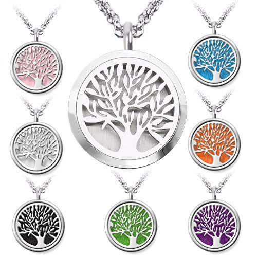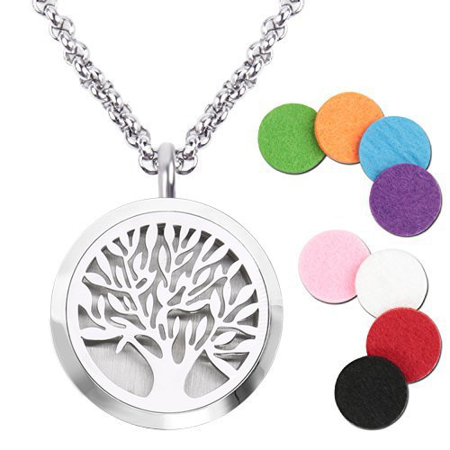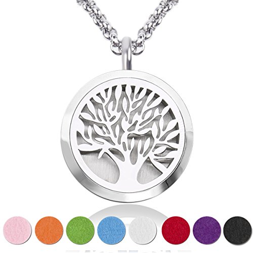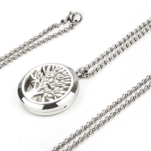 Essential Oil Diffuser Pendant Necklace,Stainless Steel Aromatherapy Diffuser Magnetic Locket Necklaces with 26" Chain and 8 Color Pads,Girls Women...
