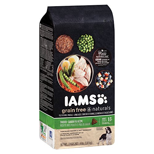 Contains one (1) 4-lb. bag of IAMS Grain Free Naturals Adult Chicken and Garden Pea Recipe Dry Dog Food