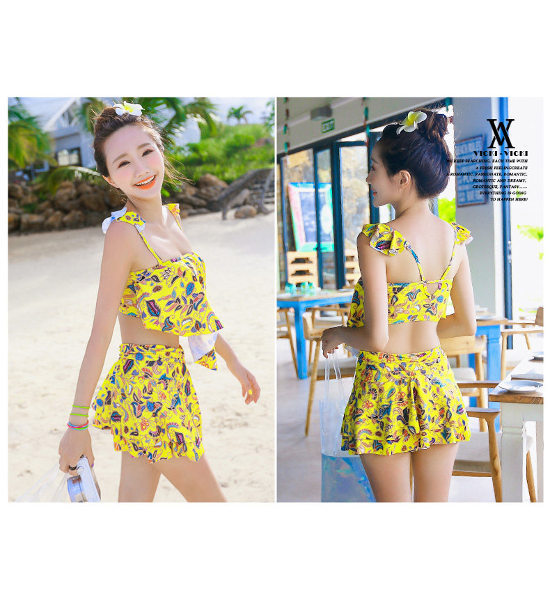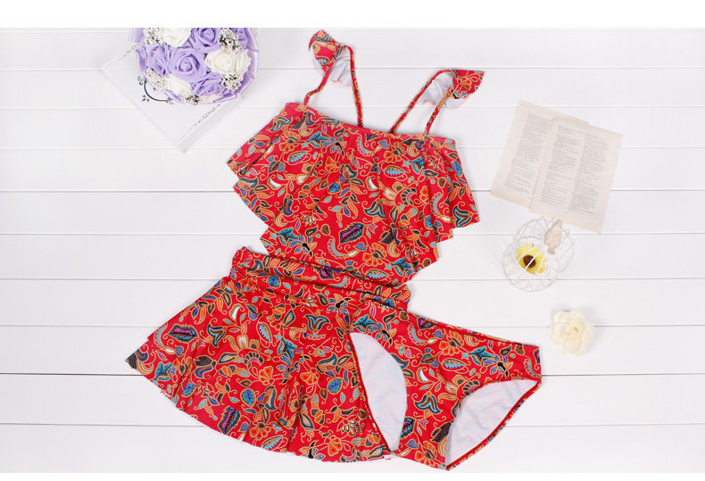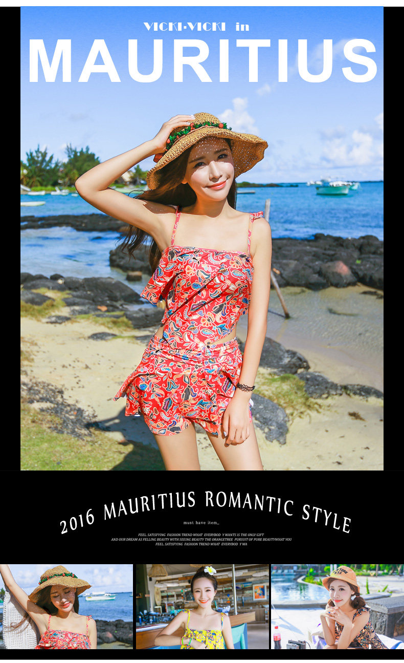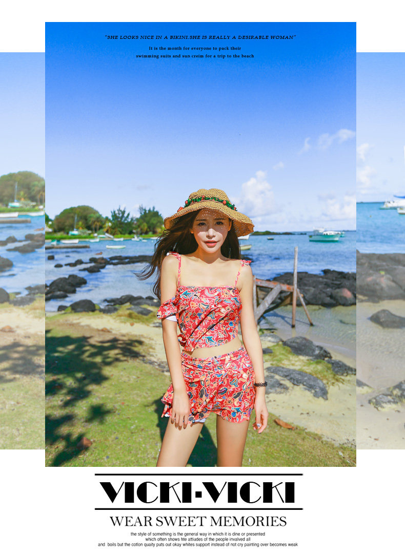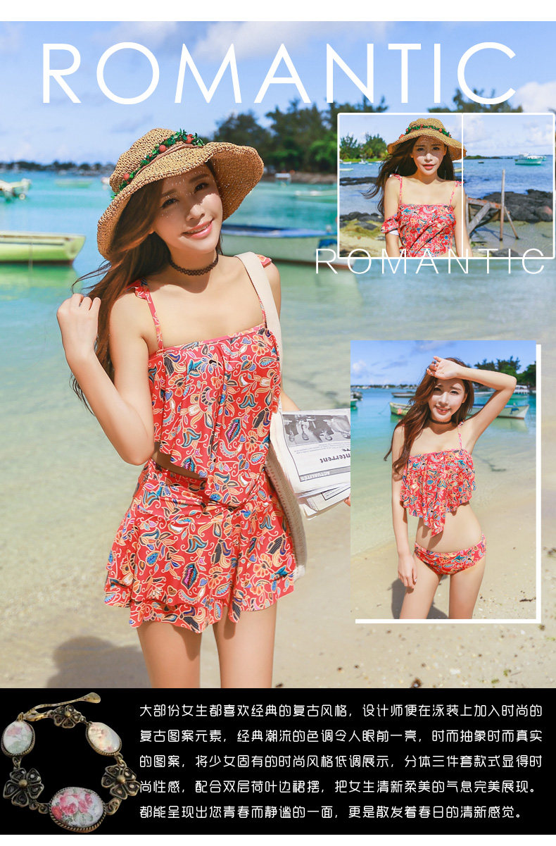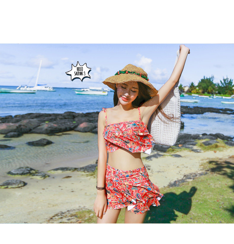 温泉泳衣女分体裙式游泳衣小胸聚拢显瘦时尚休闲保守泳装