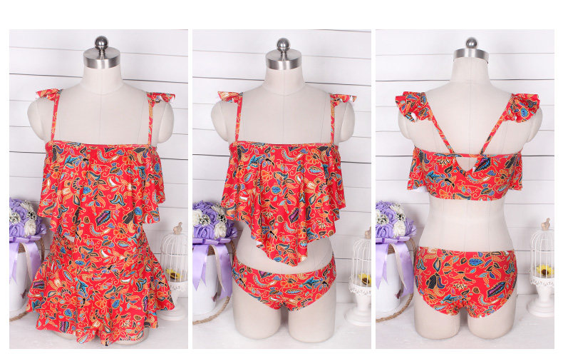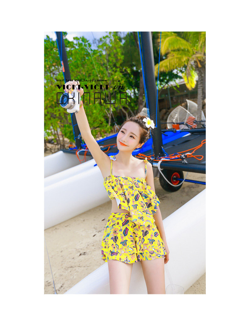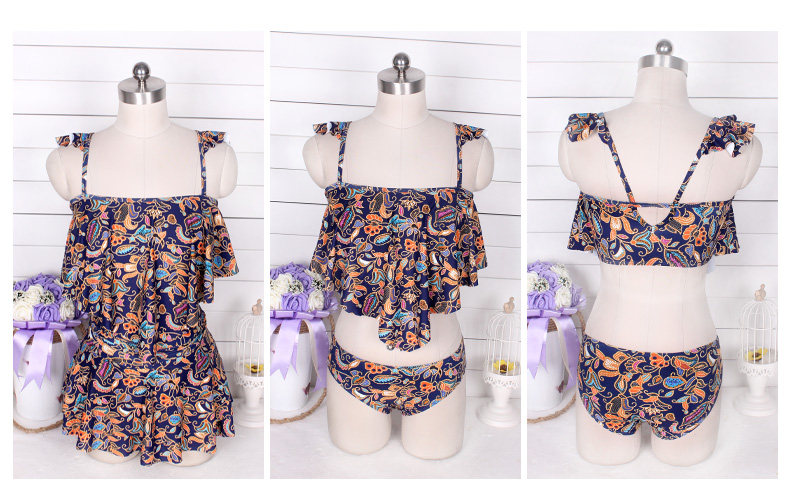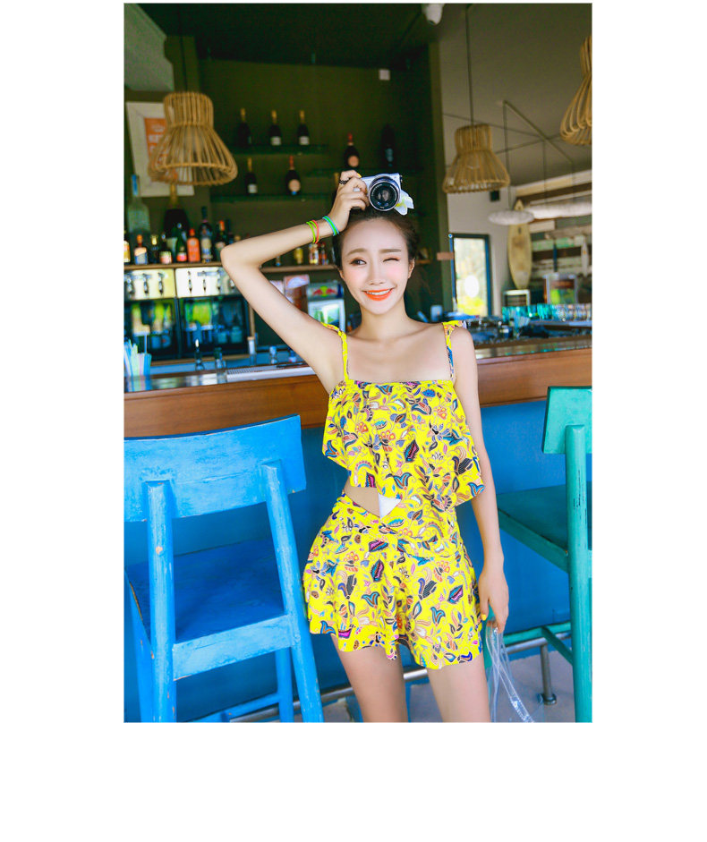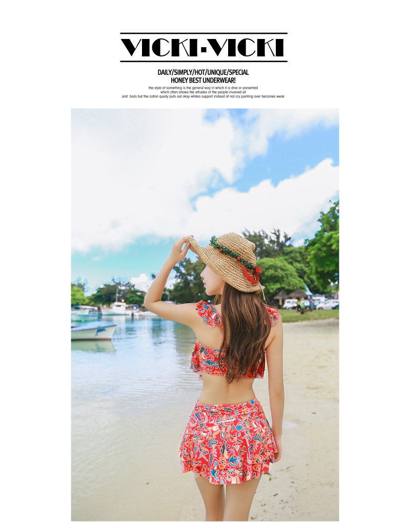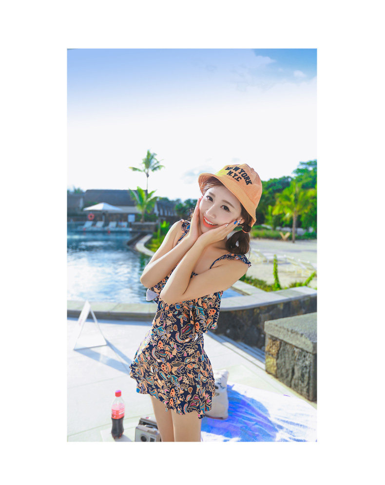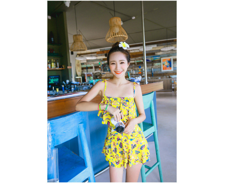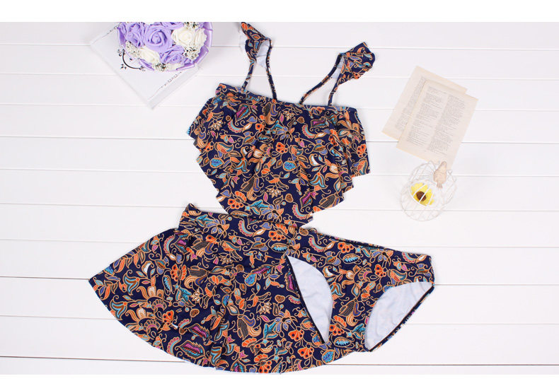 温泉泳衣女分体裙式游泳衣小胸聚拢显瘦时尚休闲保守泳装