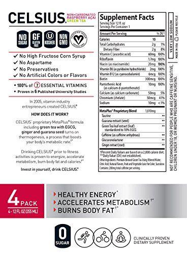 CELSIUS is a Fitness Drink proven to accelerate metabolism & burn body fat. CELSIUS’ proprietary formula includes Green Tea Extract with EGCG, Ginger and Guarana Seed Extract which provide healthy energy, making CELSIUS a refreshing alternative to other caffeinated drinks and the perfect better-for-you pre-workout drink! CELSIUS is Certified Vegan, Kosher and non-GMO. CELSIUS’ Original line is available in seven flavors (5 sparkling and two non-carbonated) in 12oz slim cans. CELSIUS. Live Fit.Feature