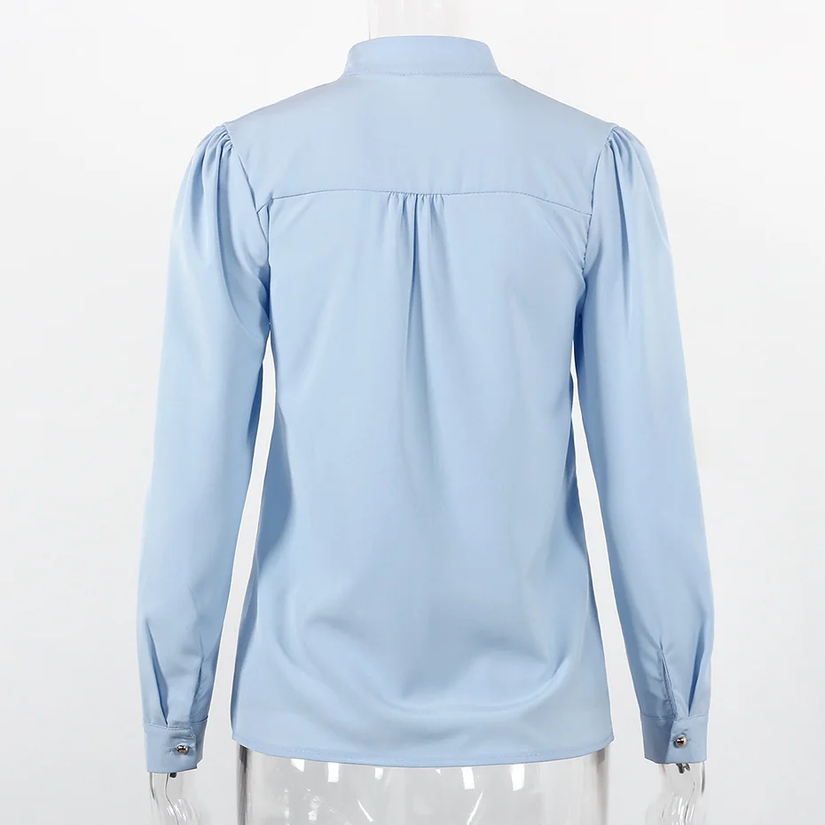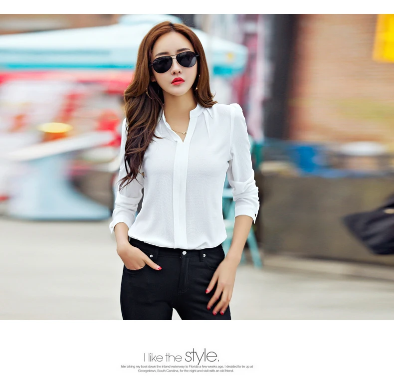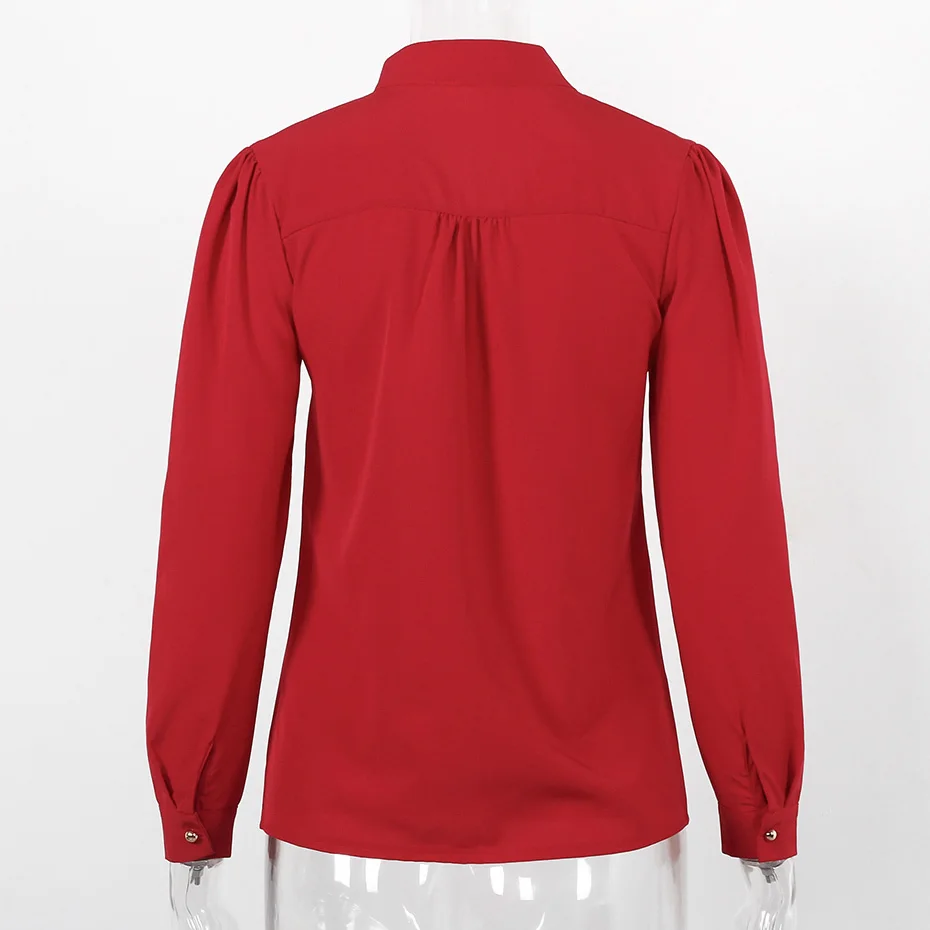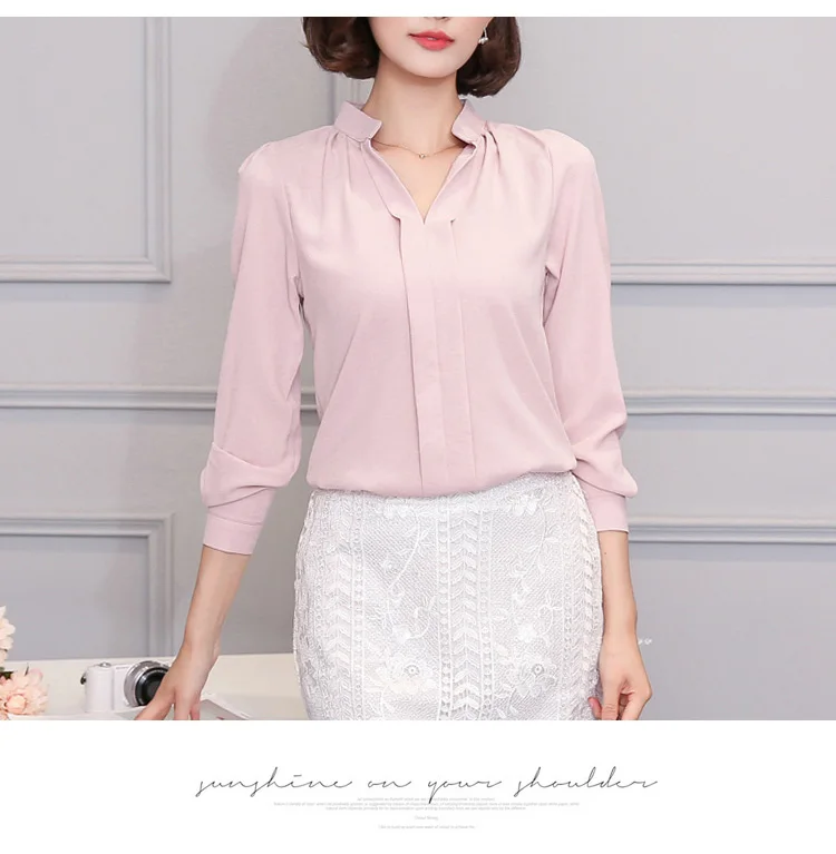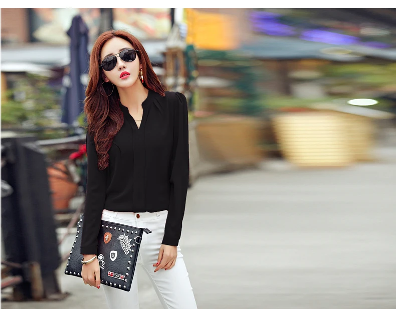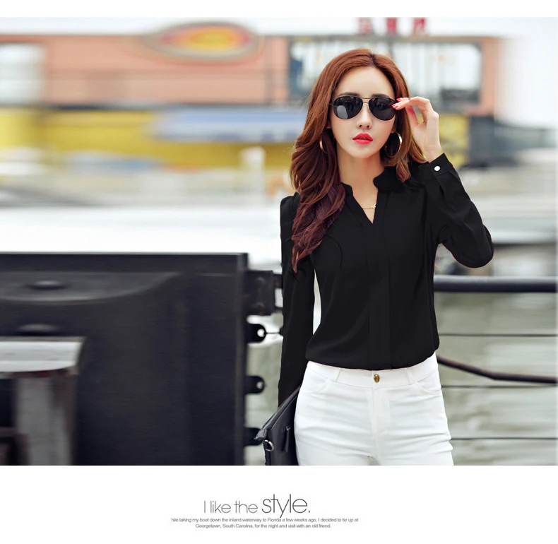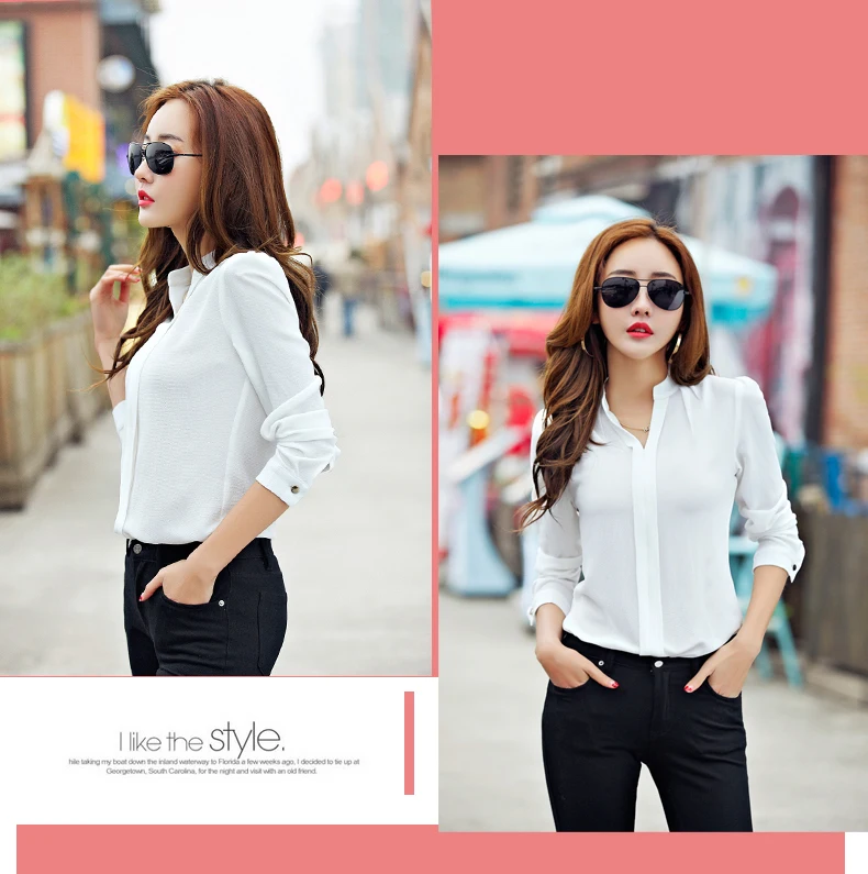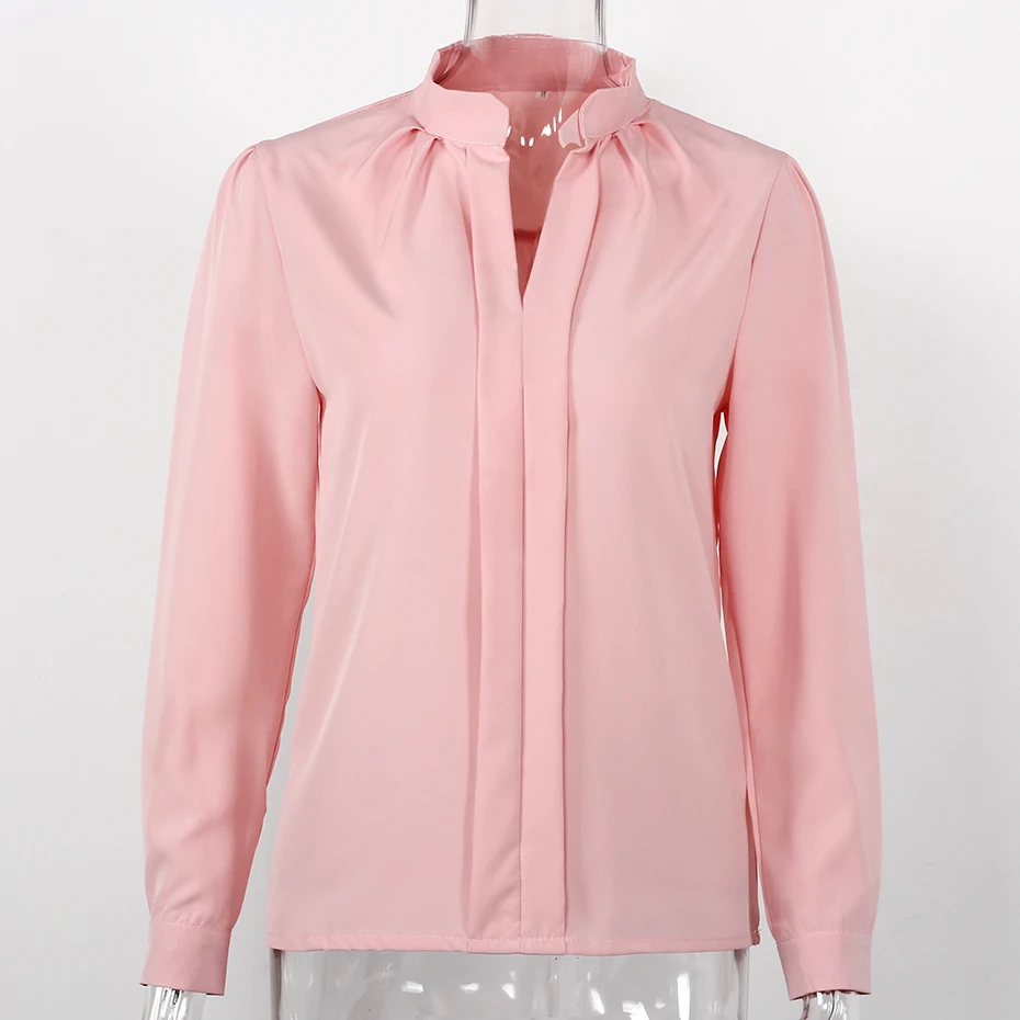 Feature:Long Sleeve Solid Chiffon Blouse Blusa