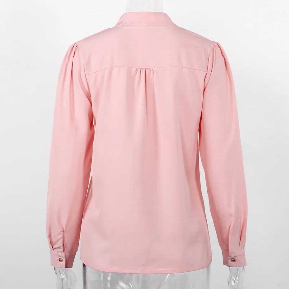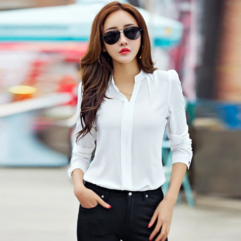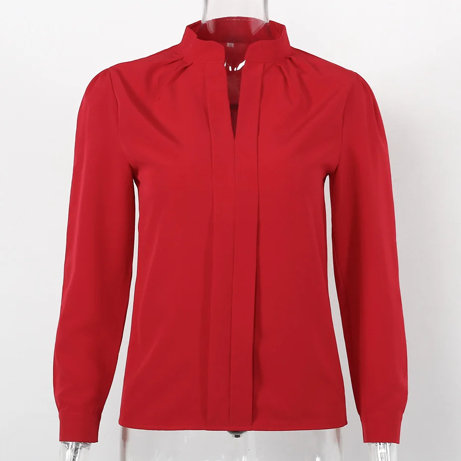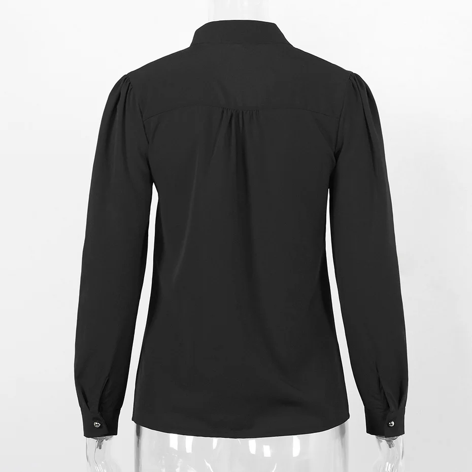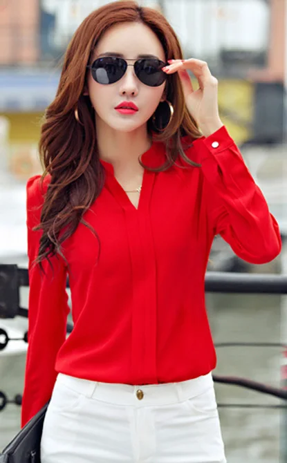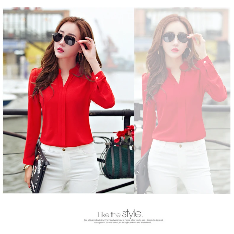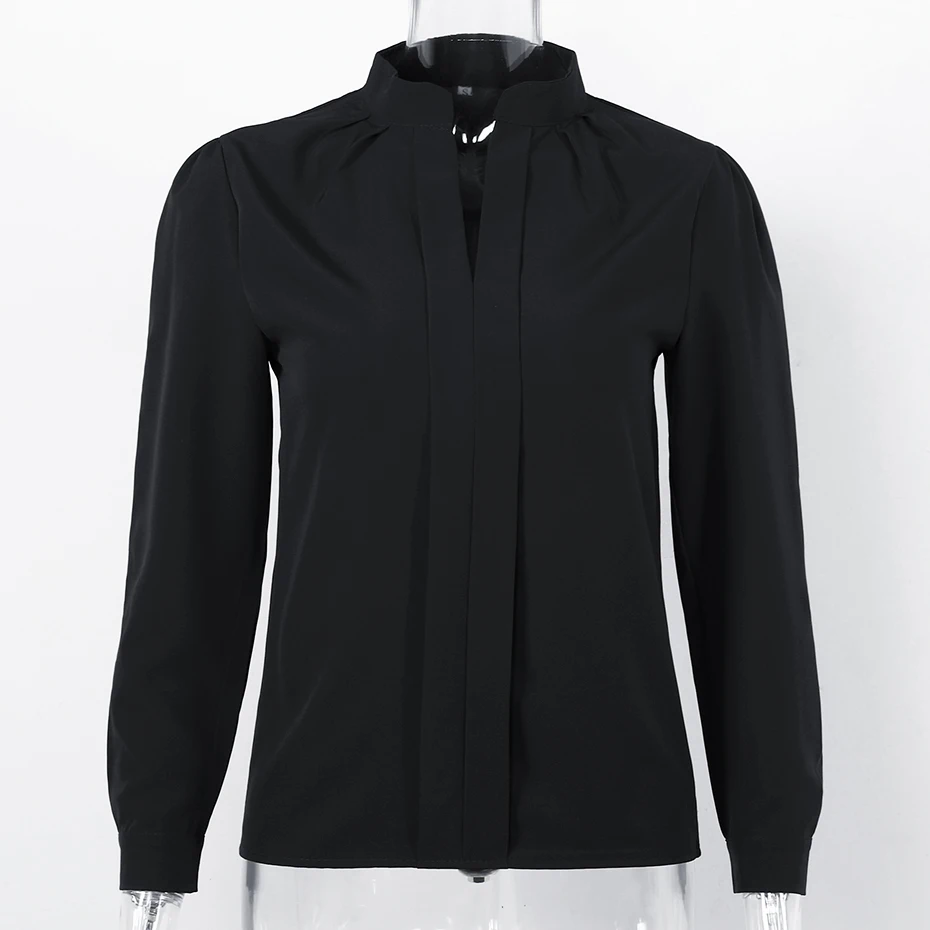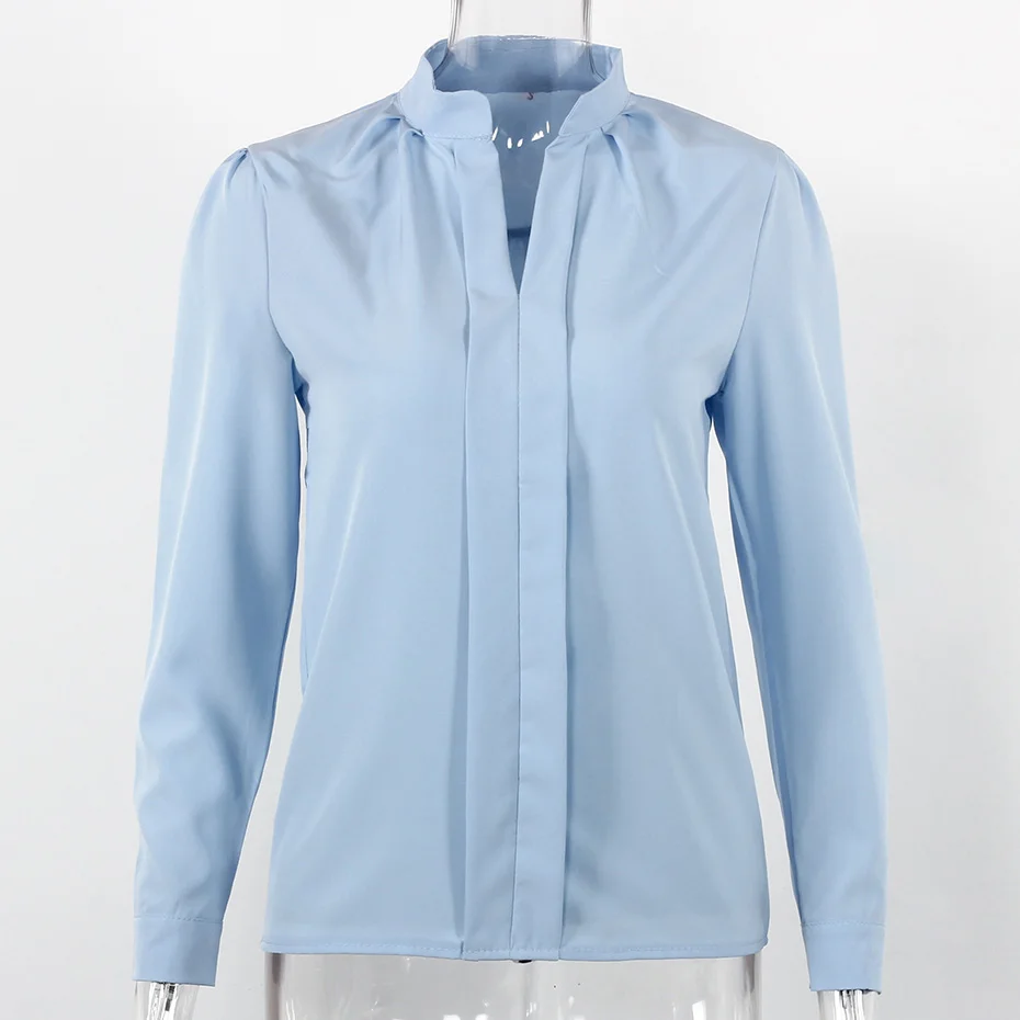 Feature:Long Sleeve Solid Chiffon Blouse Blusa