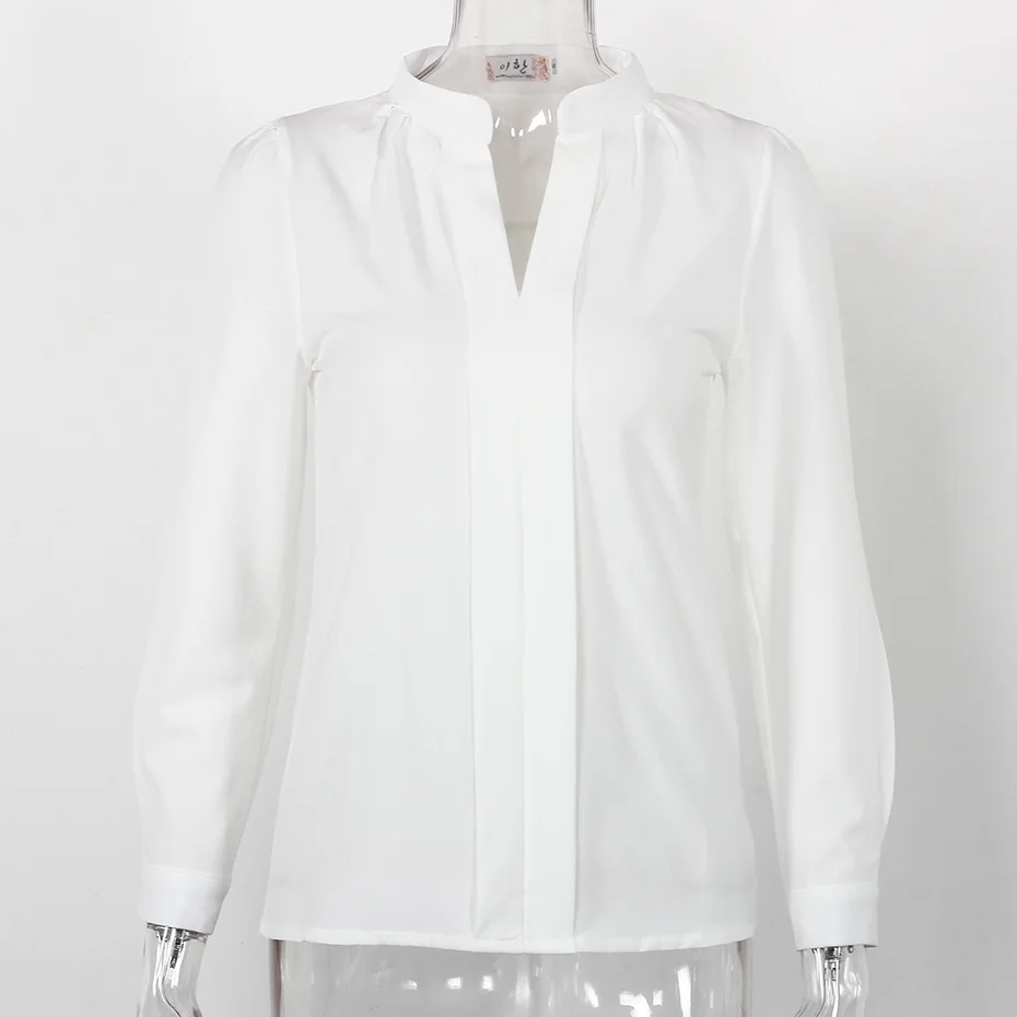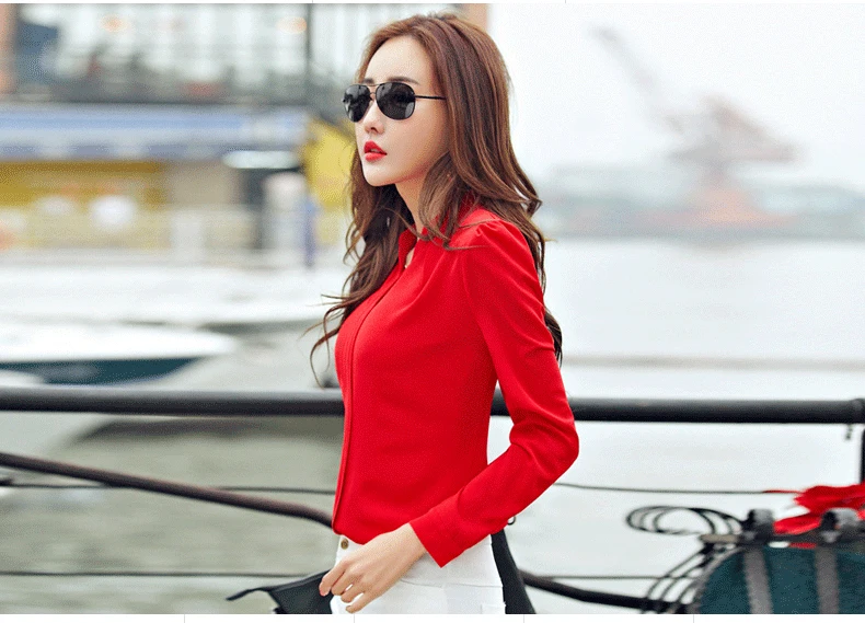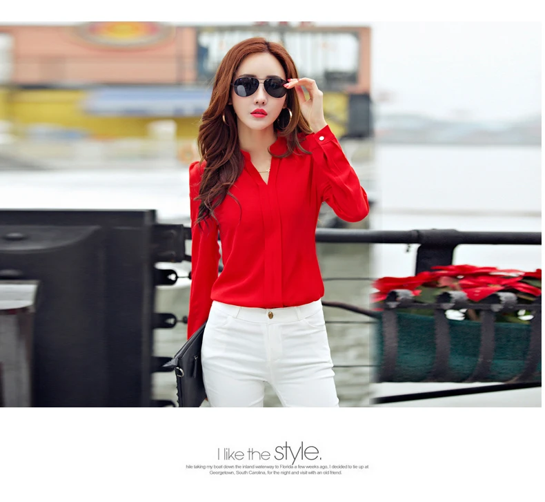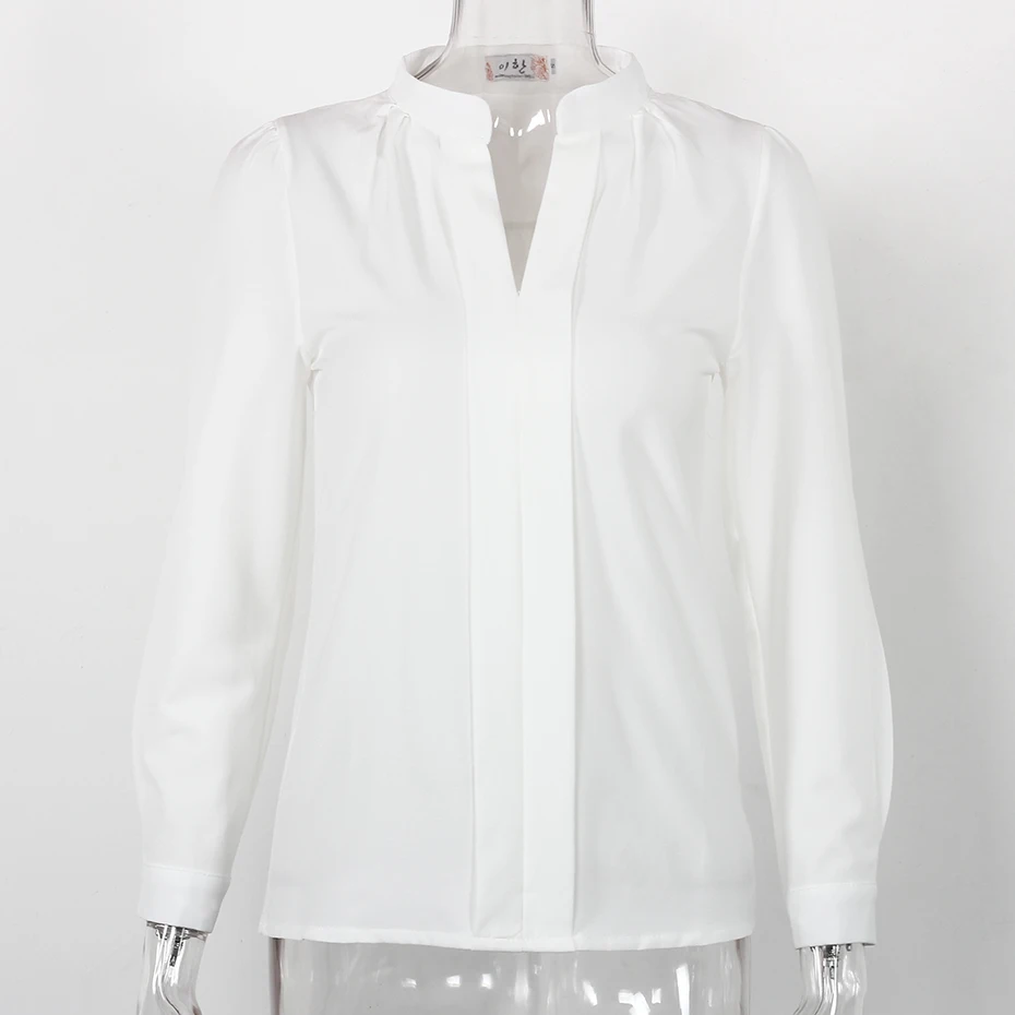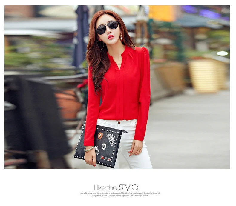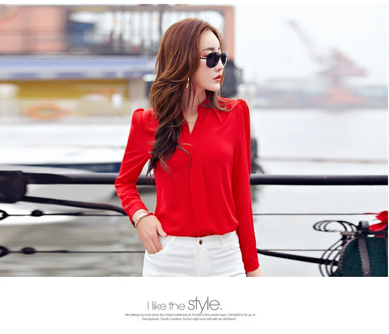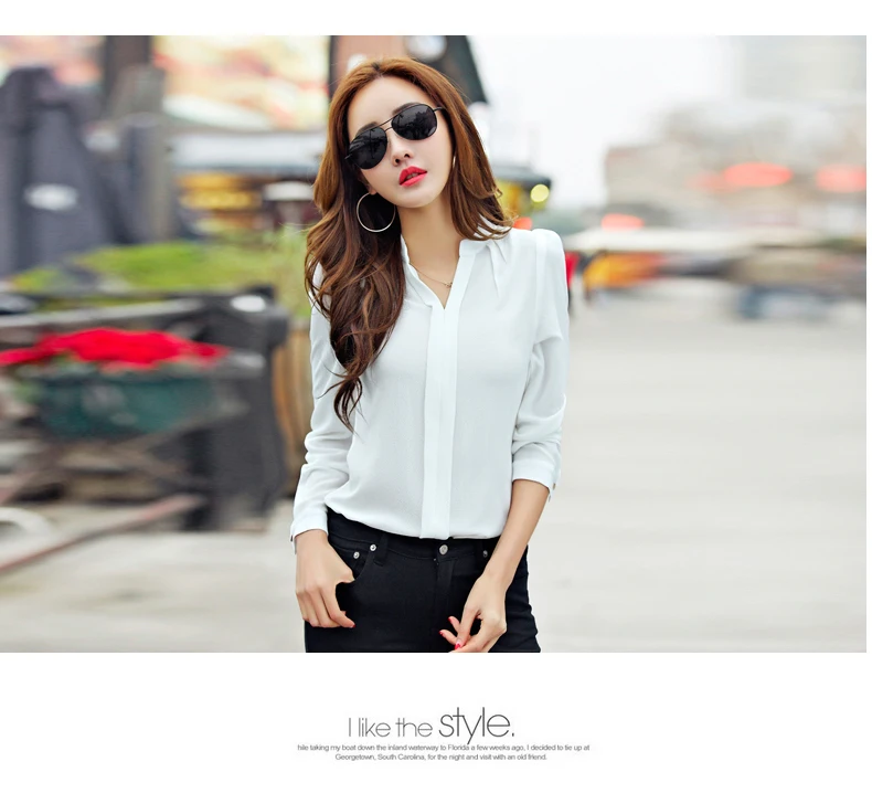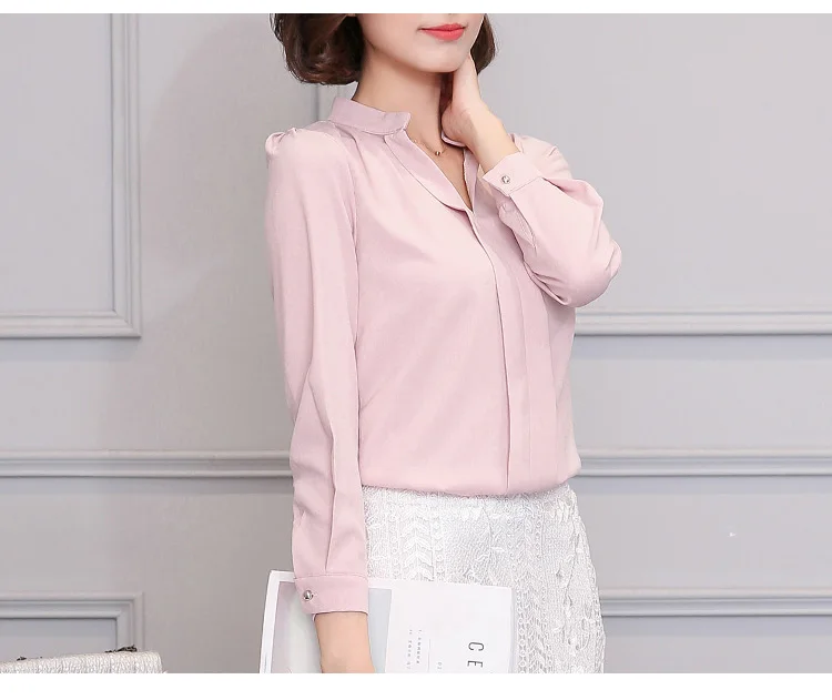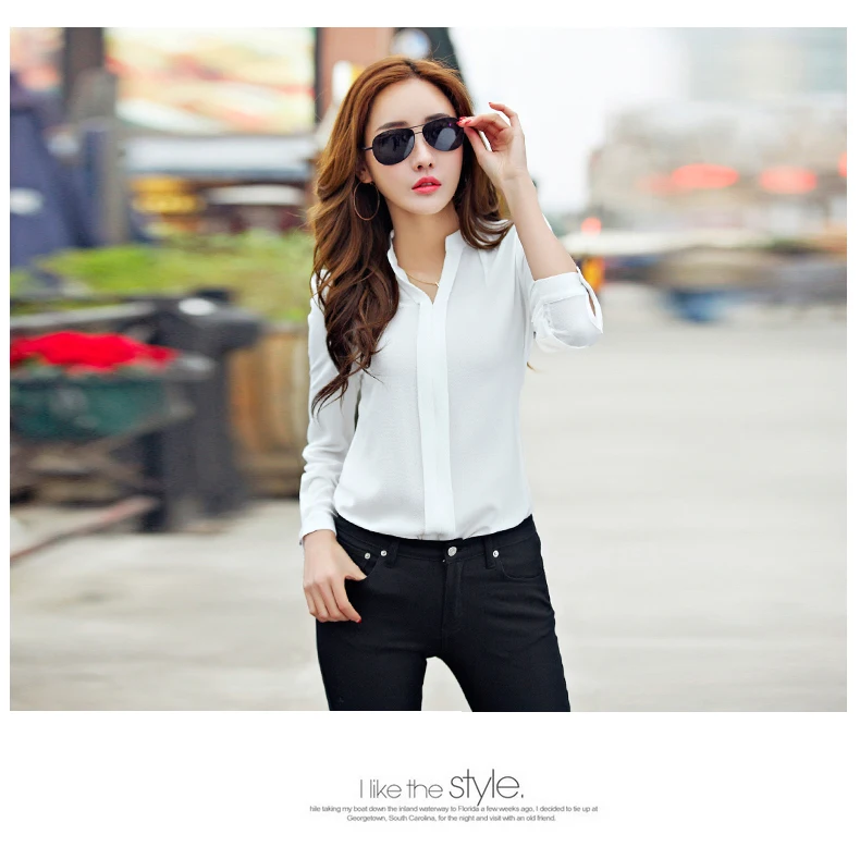 Feature:Long Sleeve Solid Chiffon Blouse Blusa