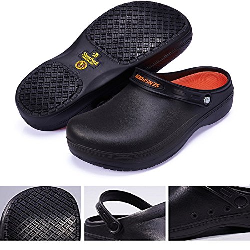 Men wateroofproof work shoes for More Information about the size for your reference: Size Chart(cm) Size Chart(cm) 7 D(M) US Men =9 B(M) US Women, 8 D(M) US Men=10 B(M) US Women , 9 D(M) US Men=11 B(M) US Women , 10 D(M) US Men=12 B(M) US Women , 11 D(M) US Men=length of inner size 11.3 ", 12 D(M) US Men=length of inner size 11.7" Anti-Slip Work Safety chef clog mule,use of advanced international materials.the use of the idea of modern shoes,the whole shoe lighter than ordinary 50%.Sole is made of advanced formula and technology,combined with the human foot walking by force direction and the sole pattern direction and depth of the relationship,desigh high anti-slip soles and improve the shoes high skid resistance and high elasticity. Slip Resistant Clog Mule Product Feture: 1.It's used imported environmental EVA material to make the shoes maximum lightweight and soft. 2. The sole dedicated two special permeable holes,remove shoes water,keep the foot dry contact surface obviously. 3.chef shoes unique anti-slip system instantly disperses water film to achieve skid stains on the washing liquid,etc. If you spend long hours on your feet, you have to pick up a pair from SensFoot Anti-slip Work Shoes. Each has a special sole, designed to protect the feet, legs, and back from the stress of standing or walking, and to propel the foot forward,helping you stay on the move.Kitchen shoes designed to meet workplace standards with closed heel and toe. 0