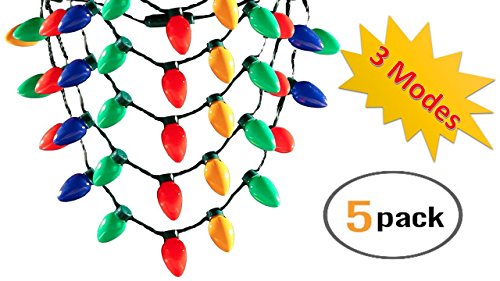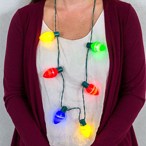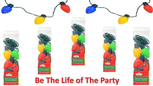 Light Up Necklace - Christmas Light Bulb Necklace - Sharing Is Caring SOoo Be The Life Of The Party - Party Favors Trees and wreaths are not the only place to hang Christmas lights! These fun necklaces have 6 HUGE colorful plastic Christmas bulbs, while the back of the necklace contains a module that holds the small batteries and an on/off switch.