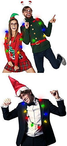 Turn the necklaces on, and the LED lights turn you in to a well lit Christmas decoration. Click again and it goes into a slow blink and click the 3rd mode for fast strobe like blinking.