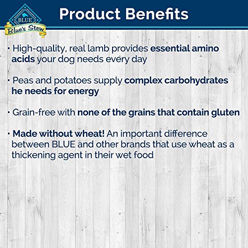 -. Binding : Misc. -. Brand : Blue Buffalo -. EAN : 0859610002498 -. Feature : Blue's Stews are a delicious and nutritious way to feed your dog like family / Includes only the finest natural ingredients and contains NO chicken or poultry by-product meals, artificial preservatives, corn, wheat or soy. / These delectable ingredients are covered in savory gravy that's made without wheat. -. Label : Blue Buffalo -. Manufacturer : Blue Buffalo -. Model : 00248 -. MPN : 00248 -. PackageQuantity : 1 -. PartNumber : 00248 -. ProductGroup : Pet Products -. ProductTypeName : PET_SUPPLIES -. Publisher : Blue Buffalo -. Studio : Blue Buffalo -. Title : Blue Buffalo Irish Lamb Stew for Dogs, (Pack of 12 12.5-Ounce Cans) -. UPC : 859610002481