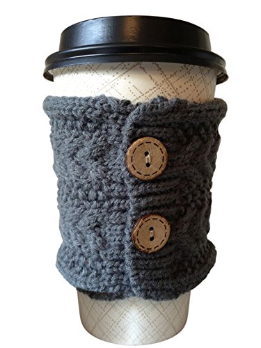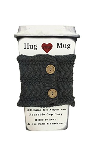 PROTECTS HANDS FROM HEAT WITH COMFORTABLE SOFT MATERIAL: Flexible enough fit a variety of cup sizes due to shrink free give of 100% knit acrylic in winter gray with button accents