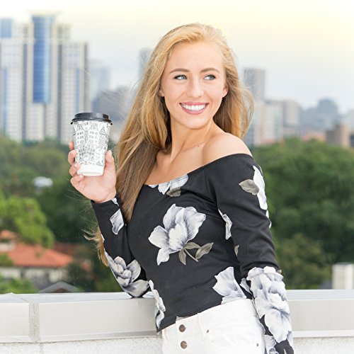 CONVENIENT LID: Every cup comes with its own black lid that fits perfectly, keeping your coffee, tea, or hot chocolate safely hot inside; the ergonomic drinking spout makes each sip easy and enjoyable