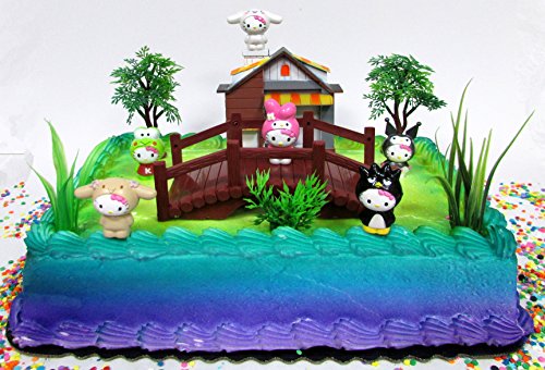 Hello Kitty Birthday Cake Topper Set Featuring Hello Kitty and Friends Figures and Decorative Themed Accessories