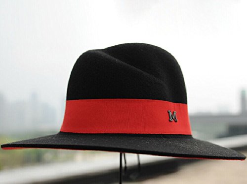 -. Title : The Trendy Women Felt Brim Fedora Letter M Top Hat/Black+Red