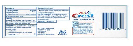 -. Title : Crest Kids Kid's Cavity Protection 4.6 oz (pack of 2)