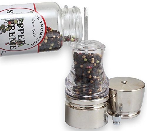 Comes filled with premium quality peppercorns and pure ocean sea salt