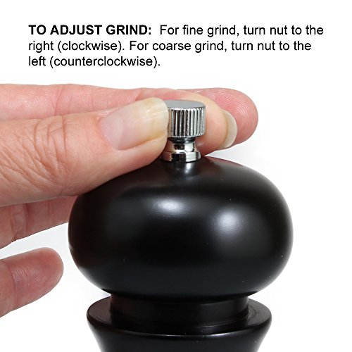 Professional quality carbon steel pepper grinder is fully adjustable from fine to coarse